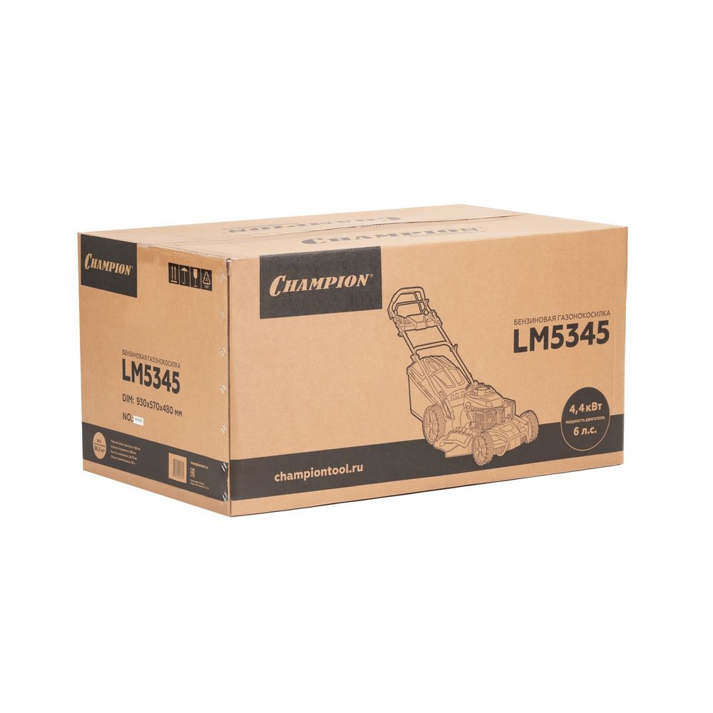 Газонокосилка CHAMPION LM5345 представляет собой производительный агрегат для ухода за большими по площади газонами. Она имеет 3 режима работы: сбор отходов в травосборник, боковой/задний выброс и мульчирование (измельчение) для дальнейшего удобрения почвы. Регулировать высоту кошения можно с помощью центрального рычага в диапазоне 25-75 мм. Широкий профиль колес не оставляет следов на только что скошенном участке газона.