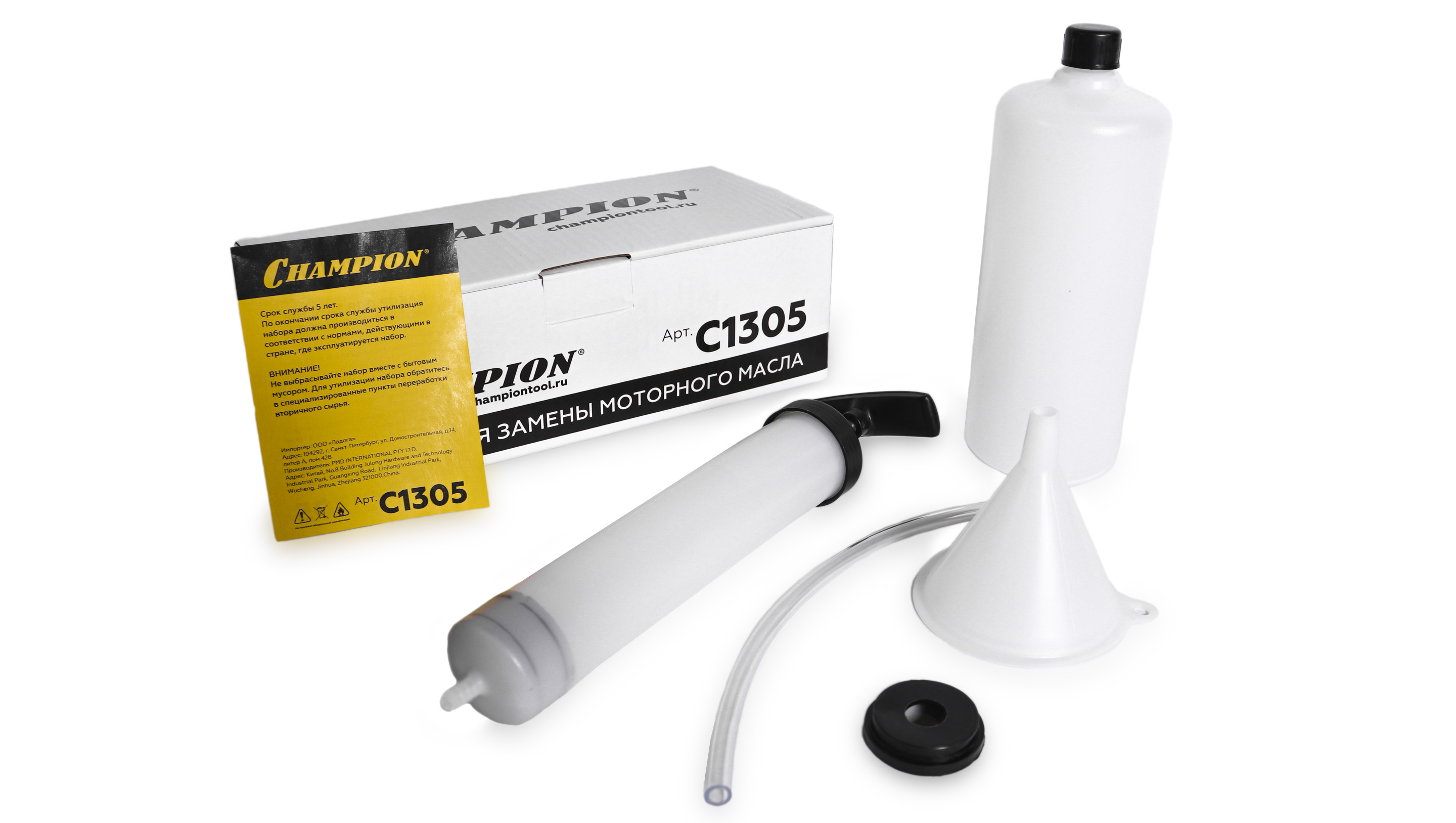 Необходим при самостоятельной замене масла и обслуживании двигателя. В наборе: насос (шприц) для отсасывания масла, заливная воронка и приёмный резервуар. Рекомендуется для ухода за всеми видами бензиновой садовой техники.
