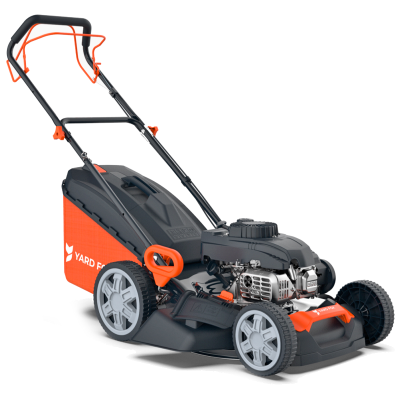Самоходная бензиновая газонокосилка YARD FOX 51S HW с шириной кошения 51 см. В штатной комплектации поставляется система мульчирования. Предусмотрена возможность бокового выброса травы, если вы скашиваете простой газон. На деке установлен штуцер, к которому можно подключить садовый шланг для очистки внутренней поверхности деки и ножа. Мощность четырехтактного двигателя составляет 4.5 л/с. Скошенная трава собирается в большой комбинированный травосборник объемом 65 литров. Участок для кошения должен быть ровный, без травяных кочек, чтобы стальной нож на большой скорости не испытывал ударные нагрузки. Высота скашивания регулируется в 7 положениях, в диапазоне высоты от 25 до 75 мм. Технические параметры бензиновой газонокосилки позволяют ее использовать в качестве основного садового инструмента для кошения на ровных газонах большой площади рядом с загородным домом, на даче. Купить самоходную бензиновую газонокосилку YARD FOX 51S HW стоит для кошения травы, газона площадью до 1800 м2.