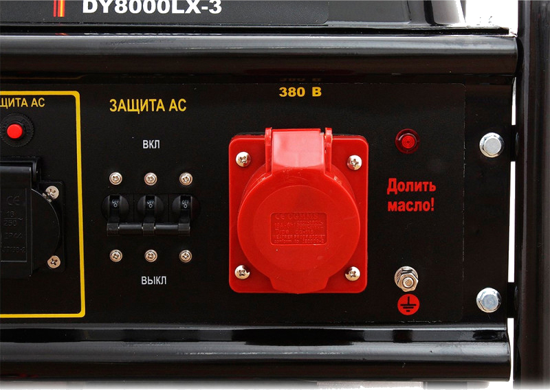 Большой топливный бак с индикатором уровня топлива, лампа, сигнализирующая о низком уровне масла, вольтметр - все это облегчает контроль за рабочим процессом и делает эксплуатацию генератора довольно комфортной.