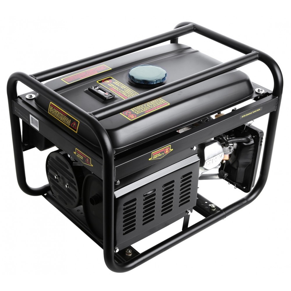 - немаловажным для удобства использования бензогенератора является и оборудование его специализированной трубчатой конструкцией с предусмотренной производителем установочной площадкой, что способствует исключительно безопасной эксплуатации не только на твердой горизонтальной поверхности, но и на песке или же мягком, легко продавливаемом грунте.