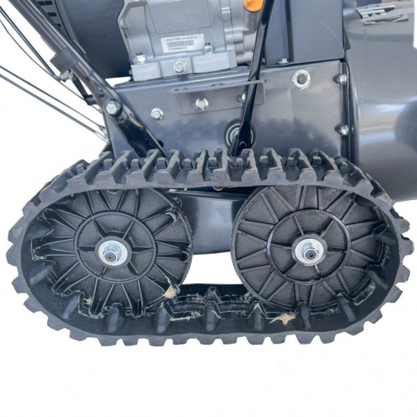 Модель EVOline SBG760TLE имеет богатую стандартную комплектацию: LED-фару, подогрев рукояток управления, легкий запуск двигателя от розетки 220В, а также гусеницы для передвижения по неровным участкам.