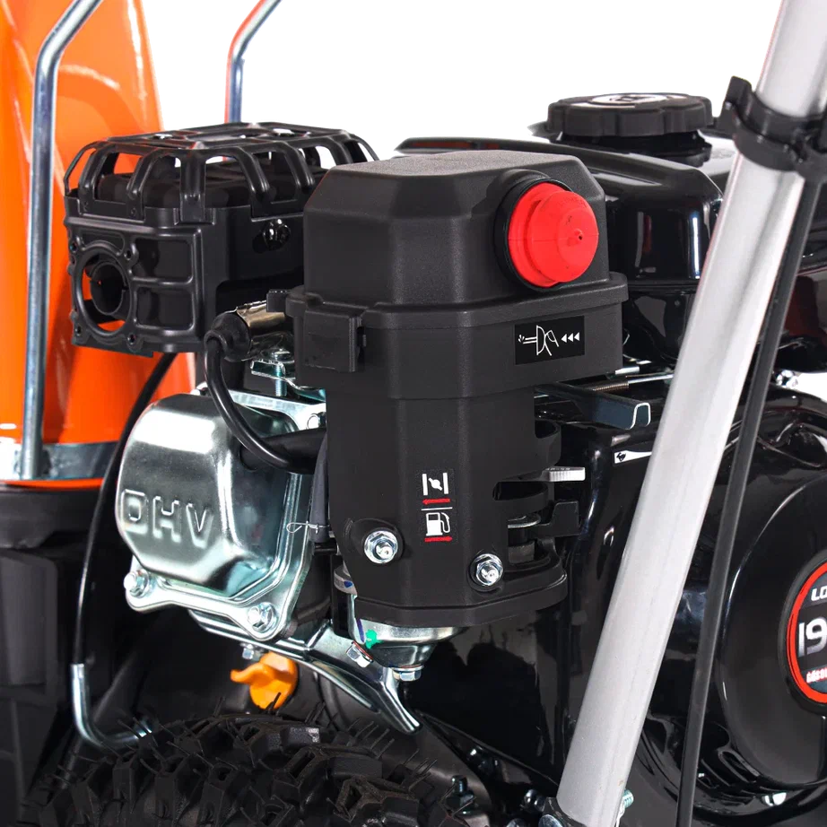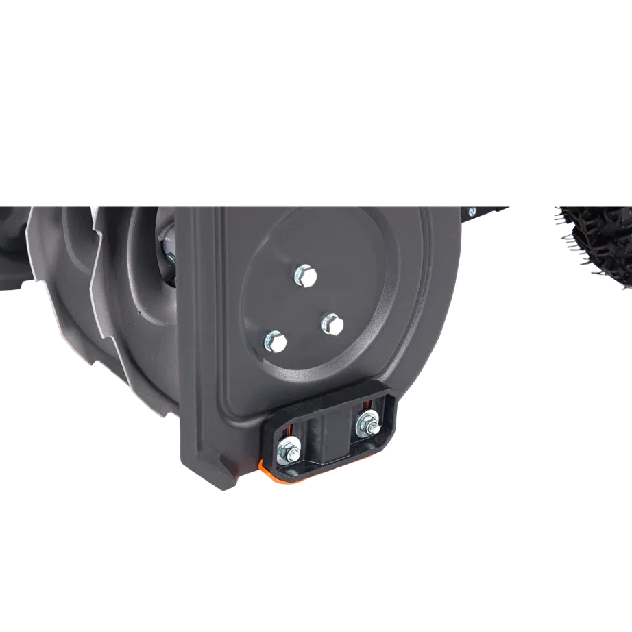 Модель подходит для обработки небольших территорий, включая автомобильные стоянки с разными типами покрытия. Надежное сцепление с поверхностью обеспечивают специальные противоскользящие шины, а комфортную работу в сумерках - яркое LED-освещение. Снегоуборщик получил обновленный премиальный дизайн корпуса с порошковым антикоррозийным покрытием. В комплект поставки входит лопатка для очистки шнека.