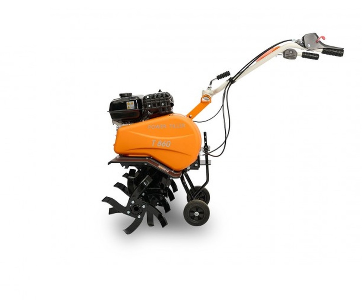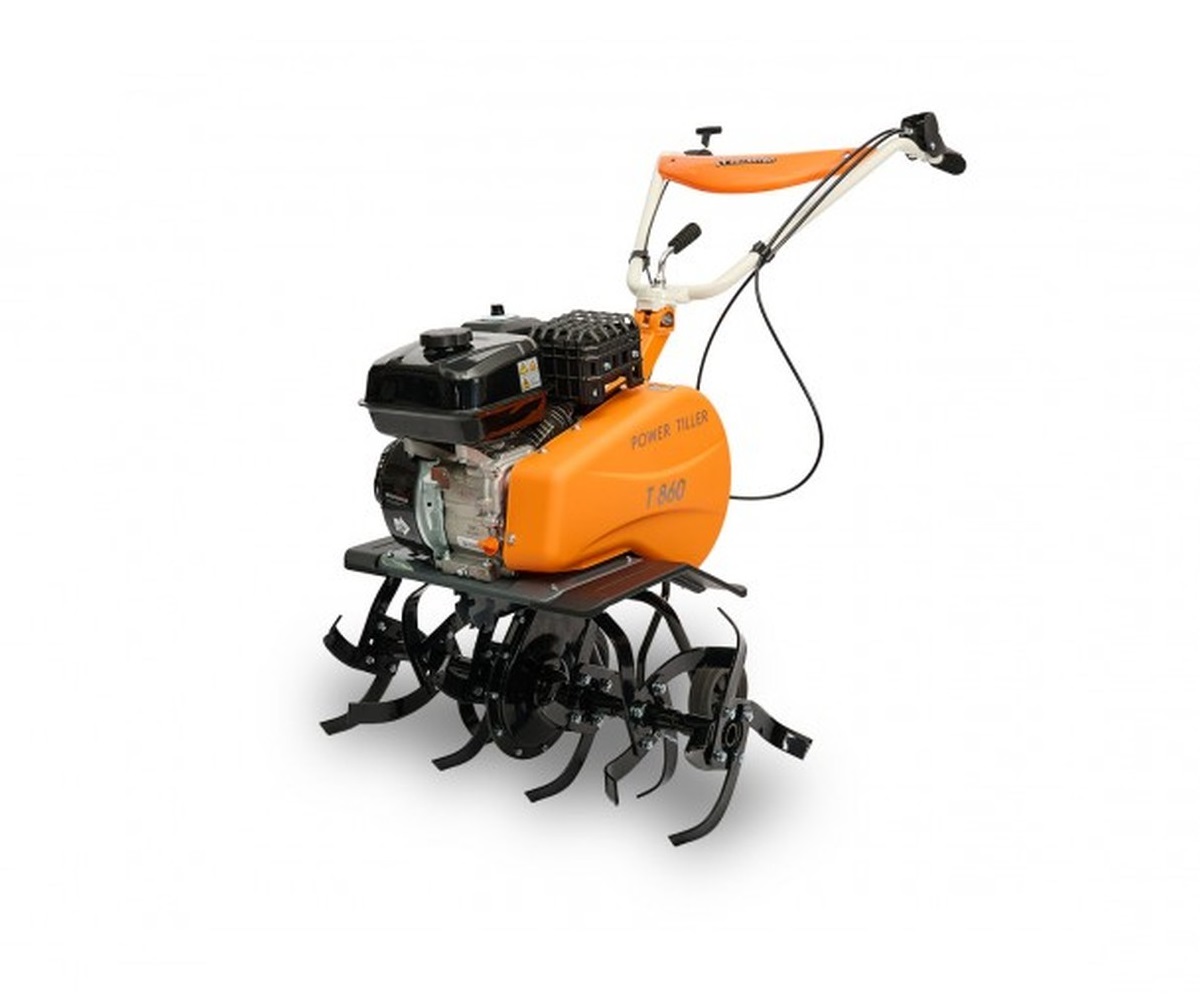 Мотокультиватор VILLARTEC T 860 оснащён мощным двигателем мощностью 7 лошадиных сил и надёжным цепным редуктором. Максимальная ширина обработки составляет 780 мм, и при необходимости можно снимать часть фрез для удобства работы в ограниченном пространстве, тем самым увеличивая маневренность.
