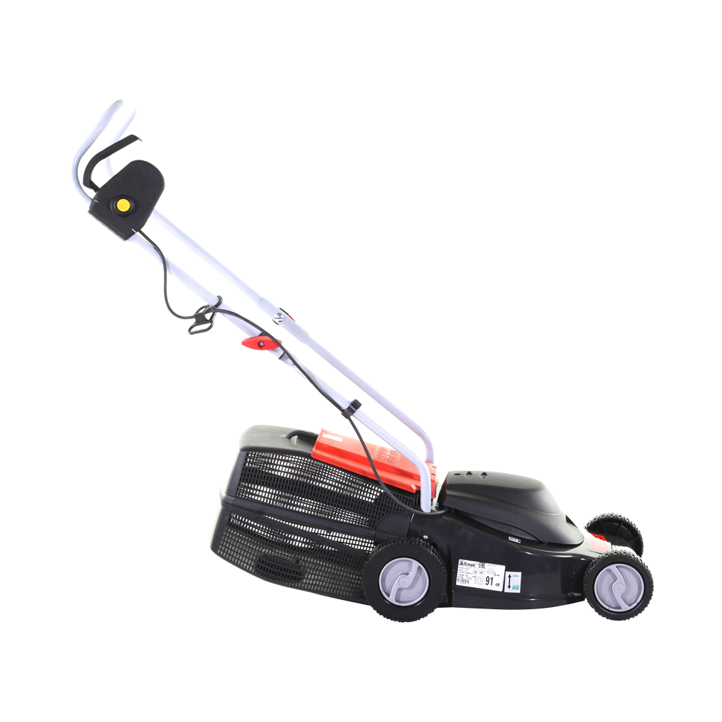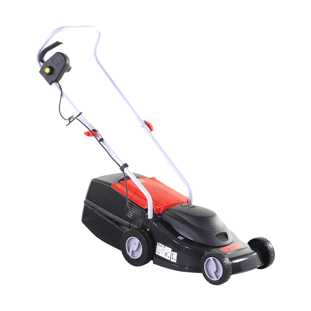 Электрическая газонокосилка EFCO PR 35 SE предназначена для кошения небольших дачных участков. Мощность электродвигателя PR35SE составляет 1,1 кВт, а ширина захвата стрижки – 33 см. Отсутствие щеточно-коллекторного узла значительно продлевает срок службы двигателя. Дека косилки выполнена из высокопрочного пластика. Травосборник электрокосилки EFCO PR 35SE вмещает 25 литров. Регулировать высоту кошения травы можно индивидуально для каждого колеса и фиксировать ее на 20, 36 или 52 мм. Вес самой косилки всего 12,2 кг, поэтому ее легко переносить. На PR35 SE не предусмотрен ни боковой выброс, ни функция мульчирования.
