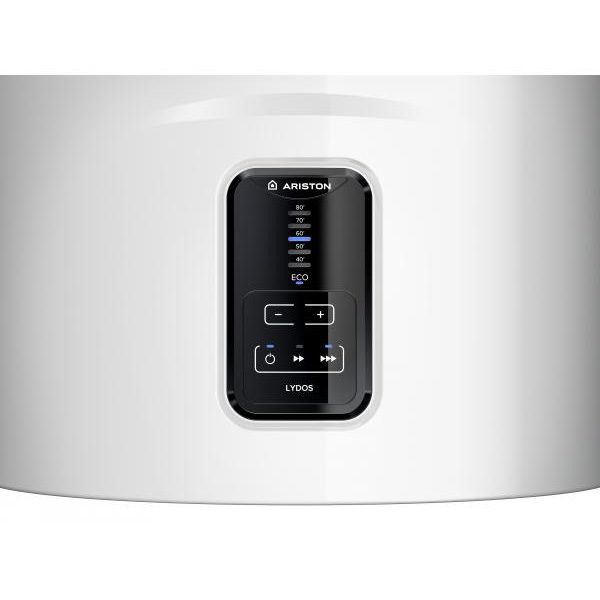 Ariston (Аристон) LYDOS ECO ABS PW 50 V – это электрический накопительный водонагреватель, предназначенный для настенной установки. На передней панели бойлера установлена электронная панель управления с наглядной индикацией заданных параметров работы. Прибор оснащен двумя нагревательными элементами и магниевым анодом, защищающим все металлические элементы внутреннего бака от накипи.