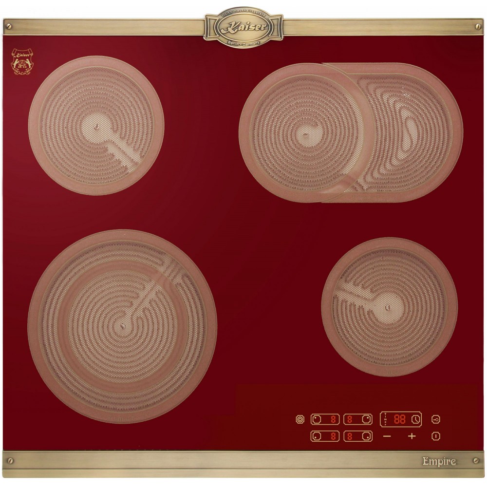 Описание конфорок - 4 варочные зоны QuickHeat Hi Light, 1 из которых имеет переключаемую зону нагрева и 1 двухконтурная варочная зонаØ 16,5 cm – 1,2 kW Ø 16,5 cm / 16,5 × 27,0 cm (1,1 / 2,0 kW) Ø 23,0 / 13,8 cm – 2,2 / 1,0 kW Двухконтурная зона Ø 16,5 cm – 1,2 Kw