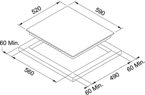 Размеры выреза: 560 x 490 мм