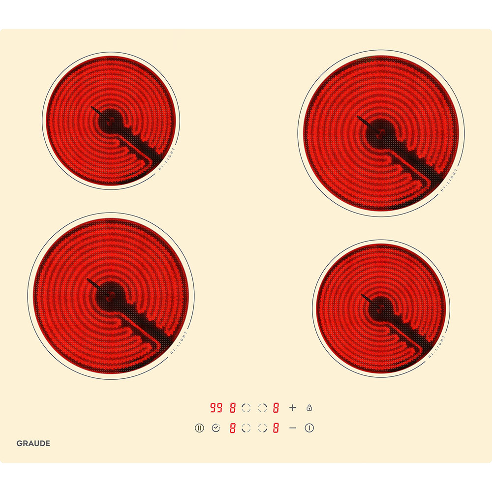 Особенности дизайна: Варочная панель Graude EK 60.0 С представлена в нежном кремовом цвете. Поверхность из стеклокерамики проста в уходе, долго сохраняет свой внешний вид и прекрасно смотрится в интерьере.