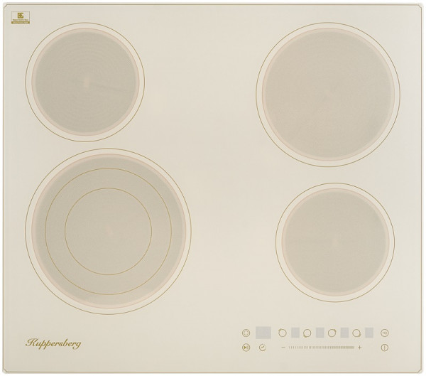 Электрическая варочная поверхность Kuppersberg ECS 603 C в бежевом цвете из прочной и термоустойчивой стеклокерамики. Четыре конфорки быстрого нагрева Hi-Light, включая одну трехконтурную, обеспечивают оптимальный нагрев под разные типы и габариты посуды.