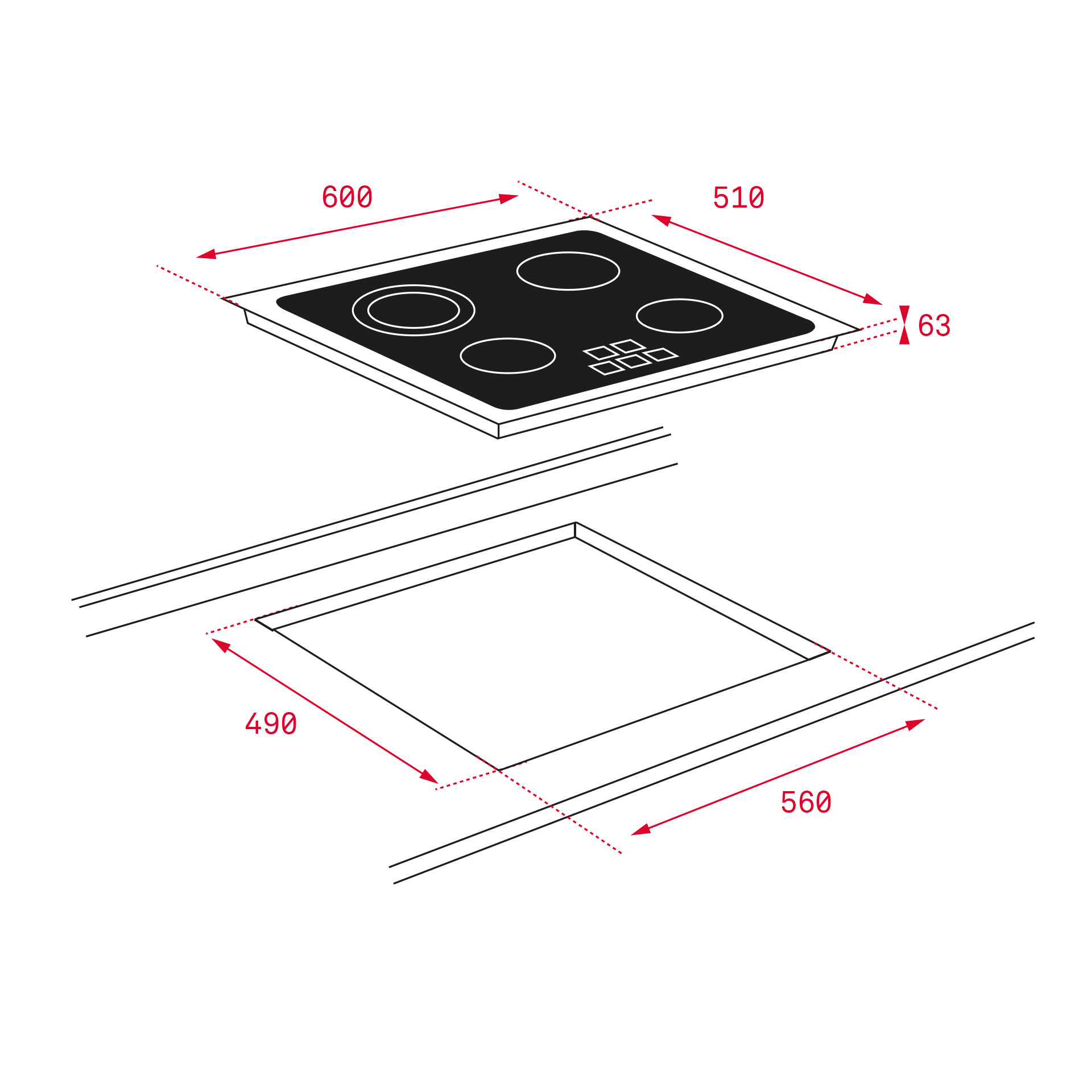 Чёрная стеклокерамика Schott Ceran® с тонкой рамкой из алюминия