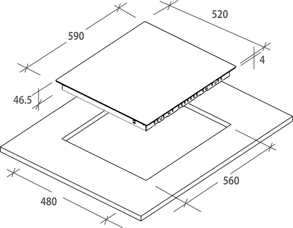 Ширина встраивания, см 56