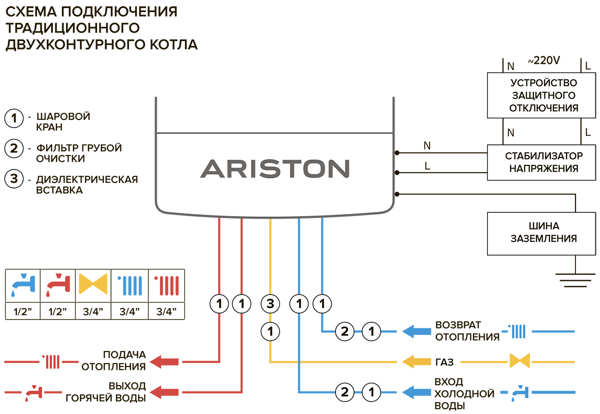 Настенный газовый двухконтурный котёл премиум-класса, совместим с приложением Ariston Net, которое дополняет и расширяет возможности по управлению котлом, позволяя управлять котлом дистанционно.