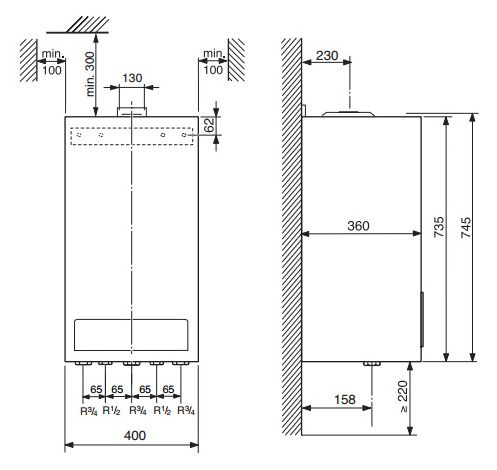 Дымоход, мм: 130