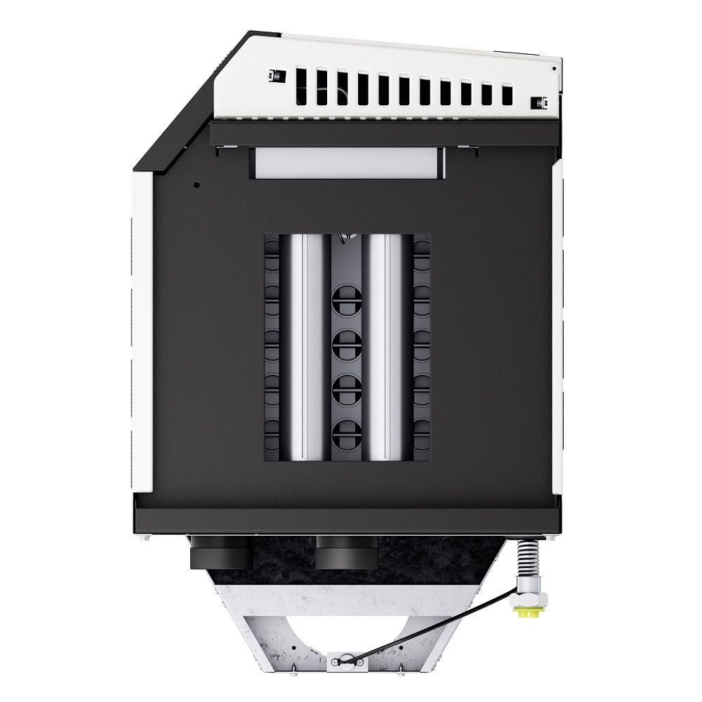 - Удобство чистки котла без отсоединения от дымохода за счет применения съемных крышек облицовки и тягостабилизатора