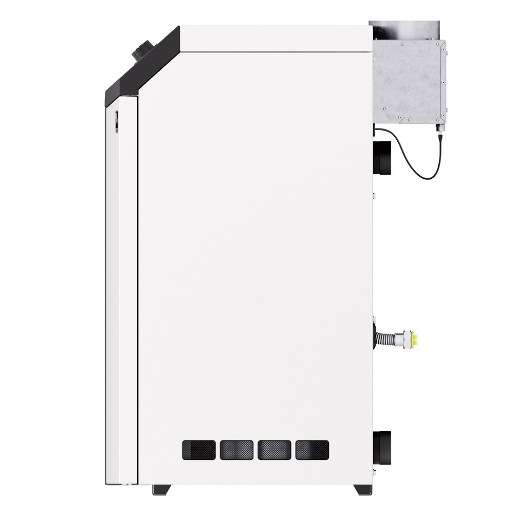 - Возможность присоединения котла как вертикальному, так и к горизонтальному дымоходу