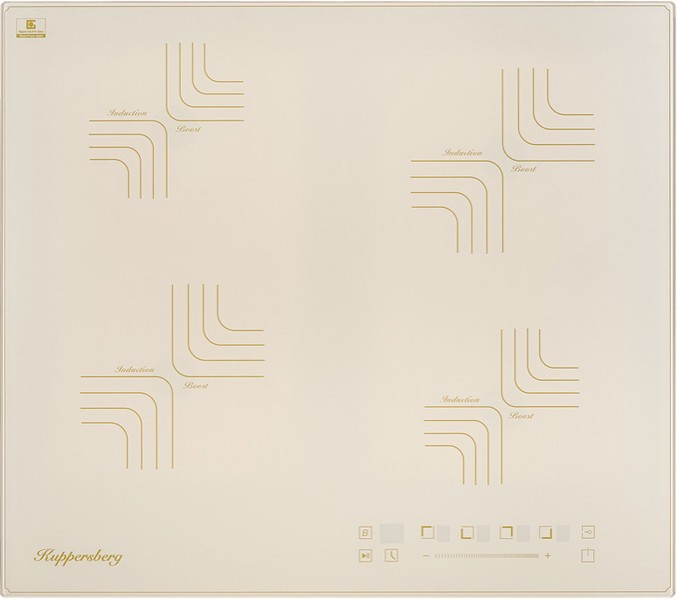 Индукционная варочная панель Kuppersberg ICS 604 C представлена в бежевом цвете. Режим Booster временно увеличивает мощность конфорок, позволяя, например, быстро вскипятить воду в кастрюле или нагреть сковороду. Благодаря сенсорному управлению выбор настроек производится легким прикосновением.
