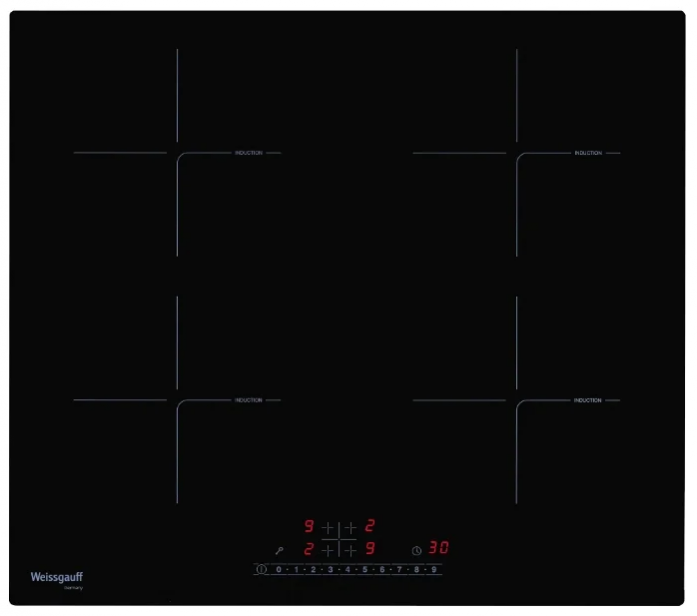 Таймер, использующийся в стеклокерамических панелях Weissgauff, является многофункциональным. Он может работать как в режиме напоминания, издавая звуковой сигнал через отведенное время, так и в режиме отключения. Причем, в режиме отключения вы можете задать, одну или несколько конфорок вы хотите выключить, и определить для каждой из них своё собственное время.