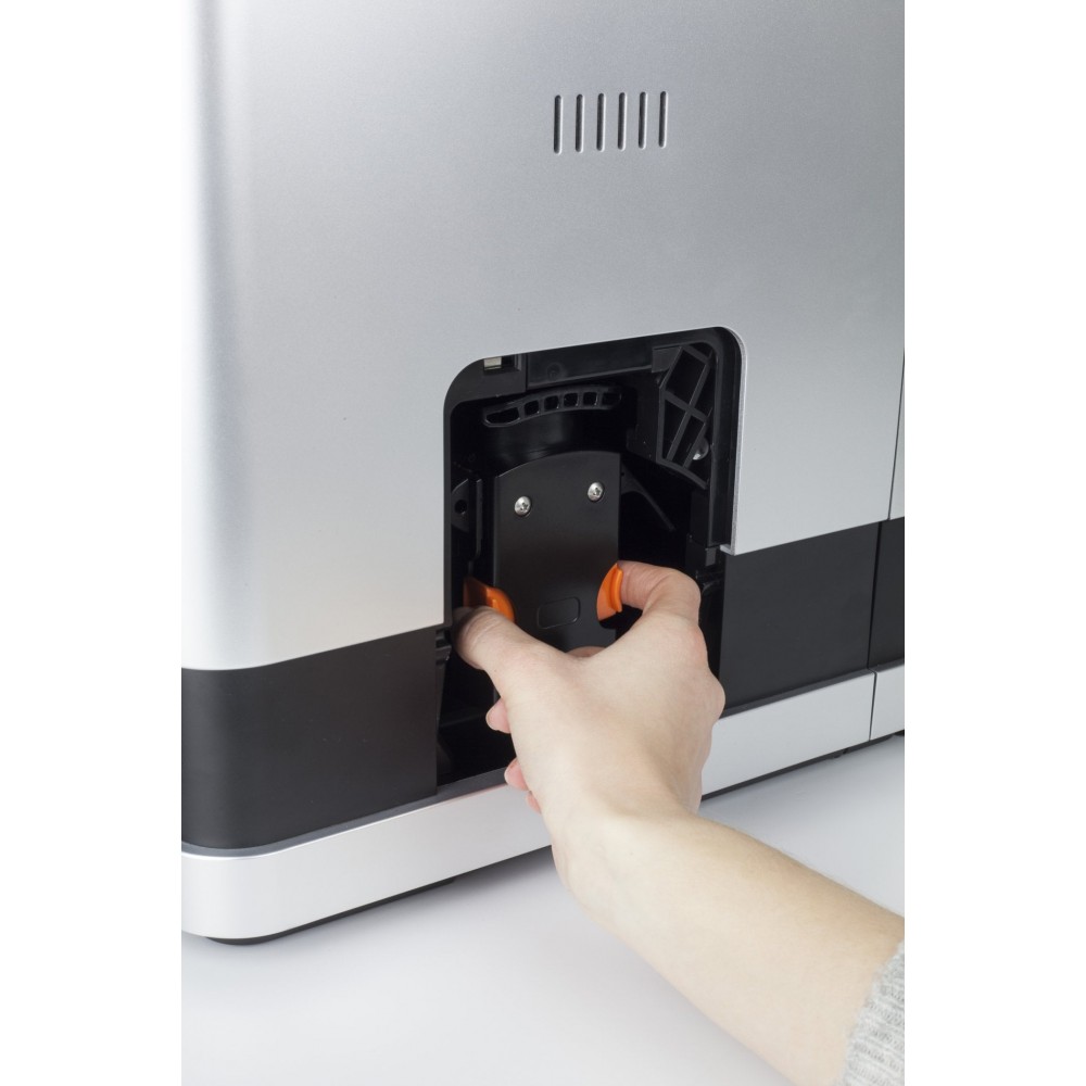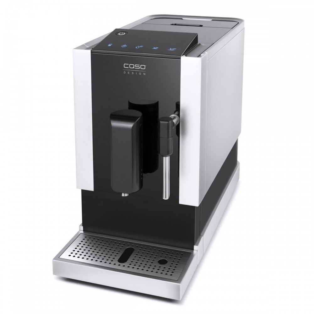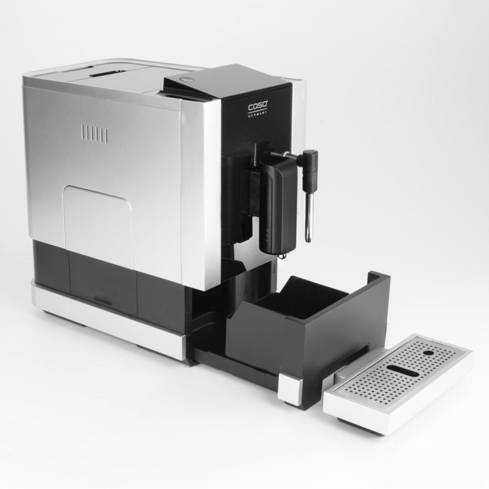 Кофемашина отличается скромными габаритами, но при этом большим объемом резервуара (1.2 л) и объемом кофемолки на 160 граммов зерен. Устройство оснащено коническими жерновами выполненными из нержавеющей стали. Высокое качество помола обеспечивается за счет пятиступенчатого регулятора.