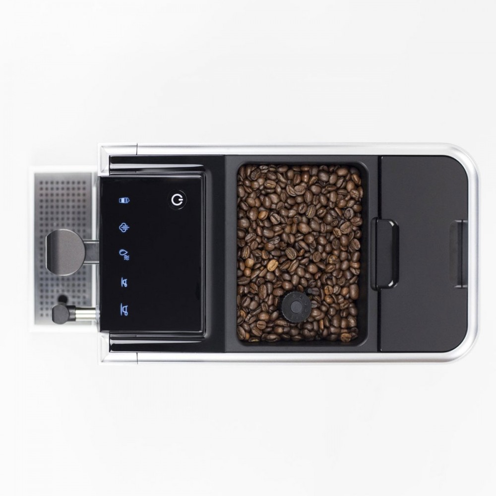 Управление осуществляется сенсорным дисплеем с наличием светодиодной подсветки. В случае нехватки зерен, наполнения контейнера для отработанного кофе, при открытой дверце варочного блока или необходимости чистки прибора от накипи, зажигаются светодиодные индикаторы.