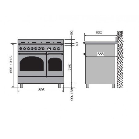 Габариты плиты (ВxШxГ) 855-915x895x600 мм