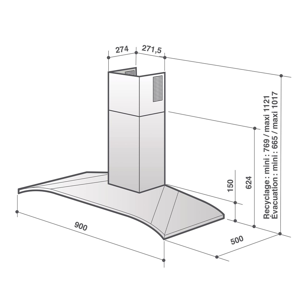 Изогнутая форма этой вытяжки скрывает различные функции: электронное управление для задания параметров мощности всасывания, функция отсрочки выключения и светодиодное освещение.