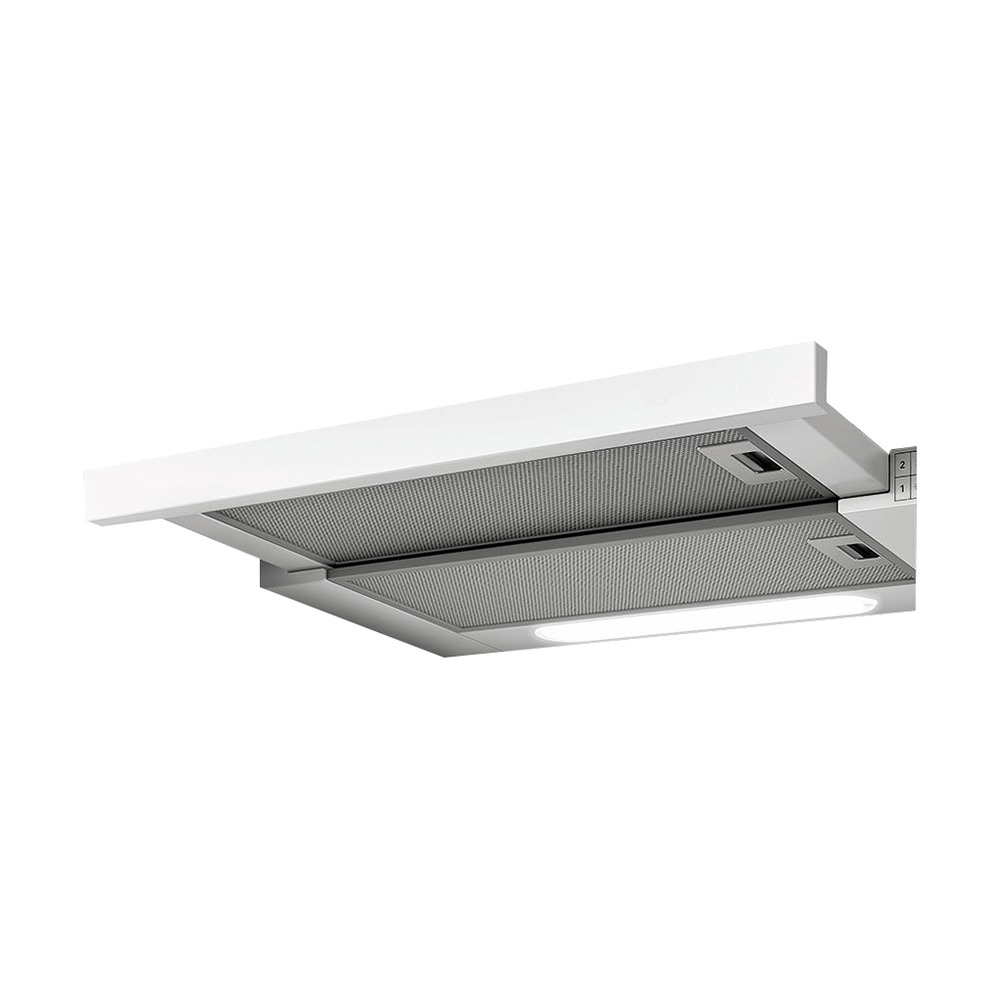 Функционал. Прибор включается путем выдвижения передней панели. Простые кнопочные переключатели гарантируют удобное управление тремя скоростями вытяжки и включением/выключением освещения. Алюминиевый фильтр пригоден для мытья в посудомоечной машине. Модель может работать в режимах отвода и рециркуляции (угольный фильтр для работы в режиме рециркуляции должен быть приобретен отдельно). Две яркие галогенные лампы станут полноценным источником освещения рабочей поверхности.