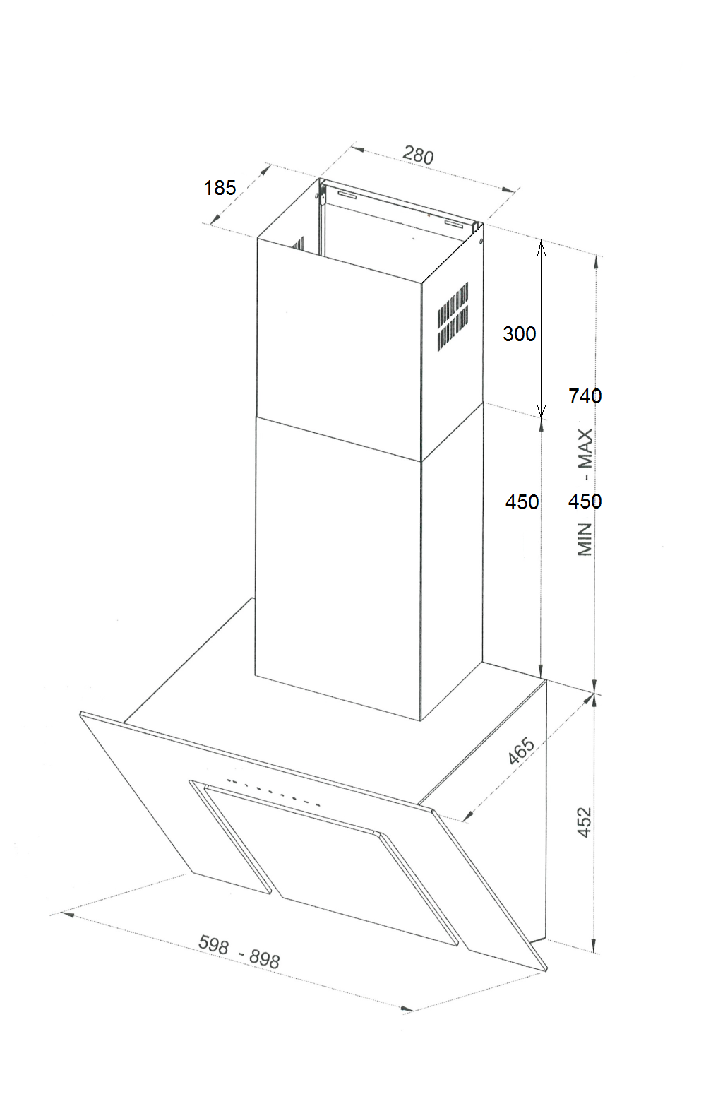 •Размеры вытяжки (ВхШхГ), мм: