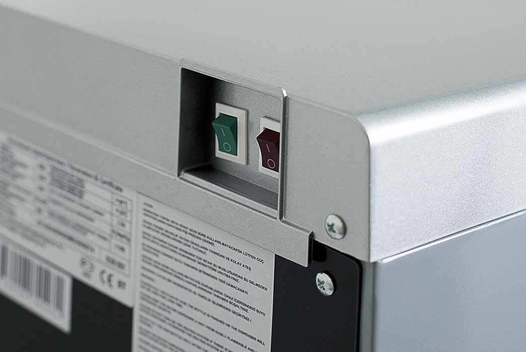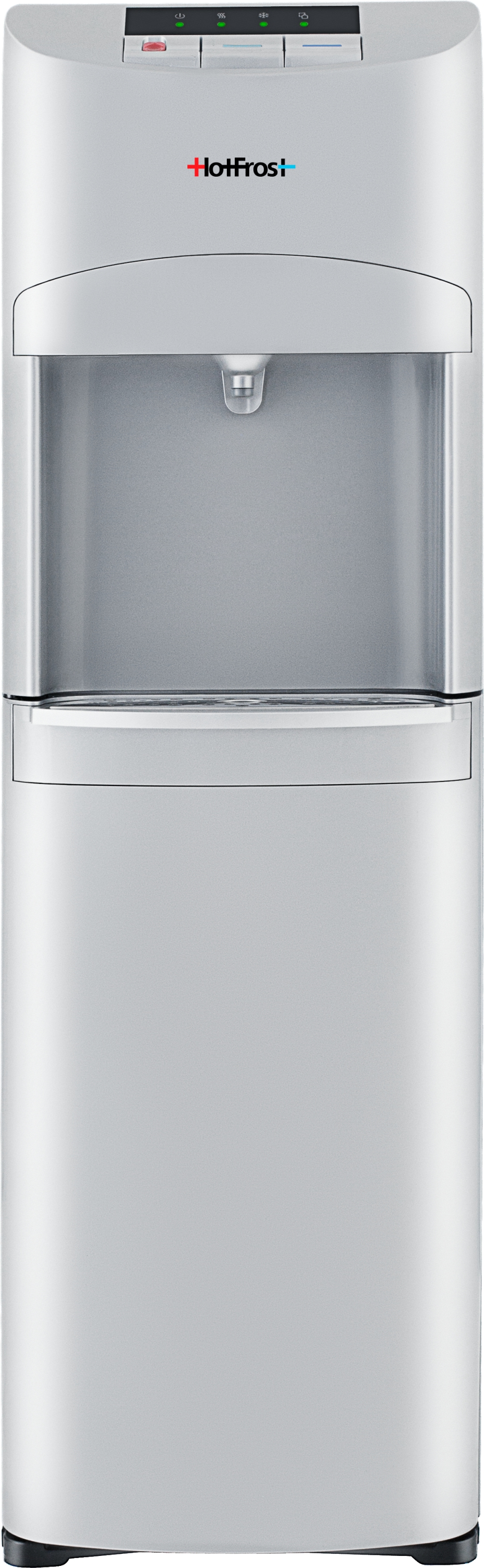 HotFrost 45AS оборудован механизмом нижней загрузки бутыли — последним словом техники в данной области. Этот механизм окажет неоценимую услугу пользователям, которые не особо любят носить тяжести. В нашем случае нижняя загрузка бутыли сводит на нет все усилия, ранее требовавшиеся для того, чтобы сменить пустую емкость от воды на новую. К тому же, спрятанная в корпус бутыль не сможет никоим образом нарушить интерьер вашего помещения. Если вы предпочитаете минимализм во всём, HotFrost 45AS — именно тот кулер, который вам нужен.