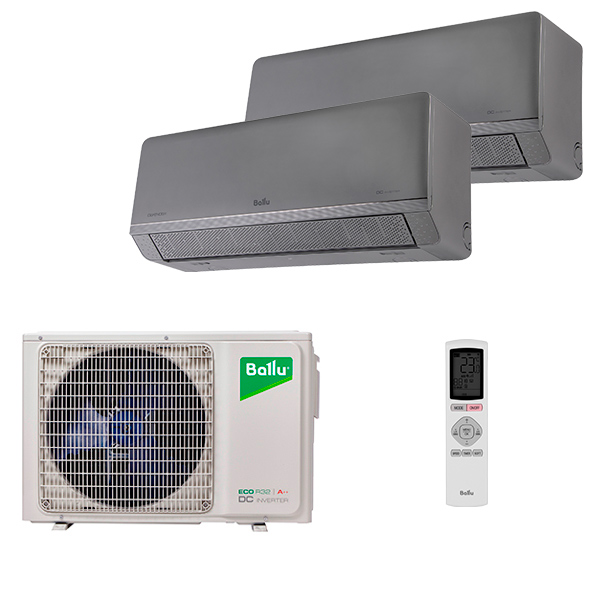 Мульти сплит система Ballu на 2 комнаты (20+20 кв.м) серия Defender Silver - новинка 2026, сочетает строгий дизайн внутренних блоков, современные технологии и низкий уровень шума.