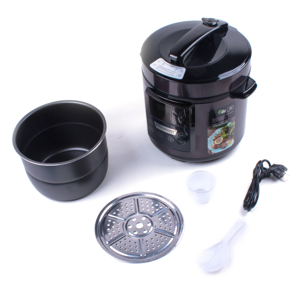Мультиварка-скороварка Endever Vita 98 вполне может заменить кастрюлю, сковороду, духовку и аэрогриль. С использованием устройства легко жарить мясо или птицу, варить суп и молочную кашу, тушить овощи и печь хлеб. Для приготовления полезных и аппетитных блюд не потребуется много усилий и времени, так как модель проста в управлении: программы устанавливаются нажатием кнопок на передней панели. На дисплее отображается время приготовления и текущий цикл.