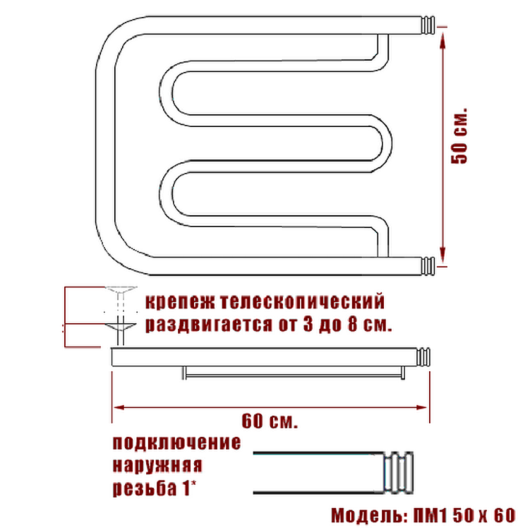 Полотенцесушитель Ника ECON ПМ 50/60 с полкой