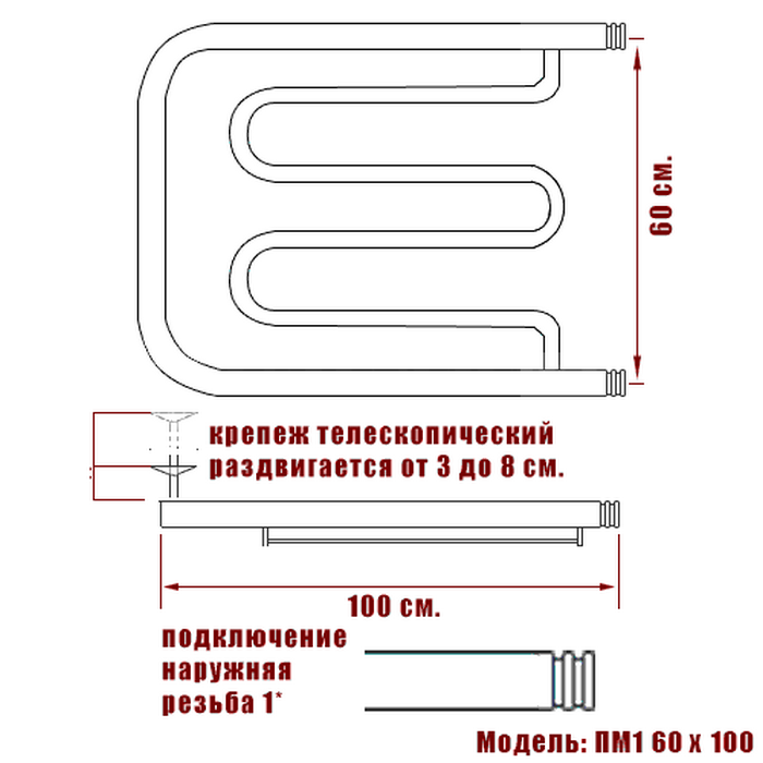 Полотенцесушитель Ника ECON ПМ 60/100 с полкой