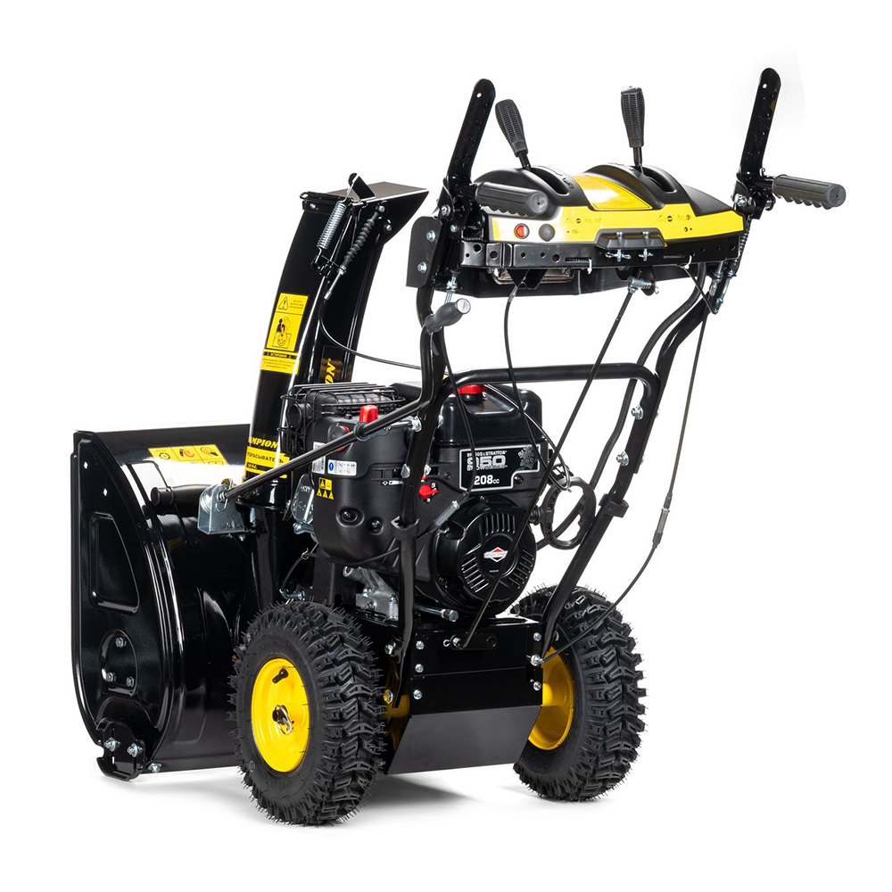 - У снегоуборщика есть электрический запуск, который срабатывает практически мгновенно, поэтому двигатель сразу начинает работать на полную мощность.