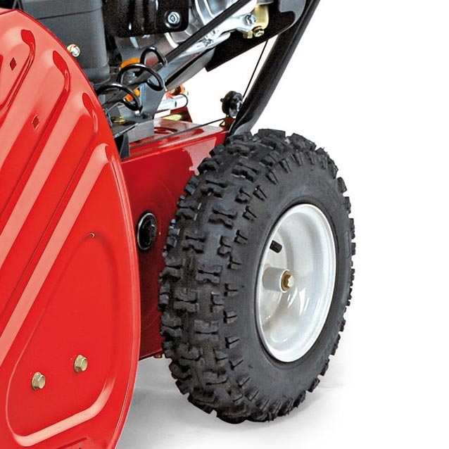 Высоту ковша над землей можно регулировать с помощью специальных полозьев. Благодаря шинам с глубоким протектором, происходит более надежное сцепление с поверхностью даже на обледенелых участках. Для работы в темное время суток предусмотрена галогеновая фара.