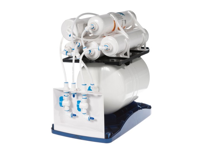 В фильтре реализована 5-ступенчатая система очистки. Она состоит из 3-х предварительных фильтров, сегмента обратного осмоса и постфильтра и работает так: