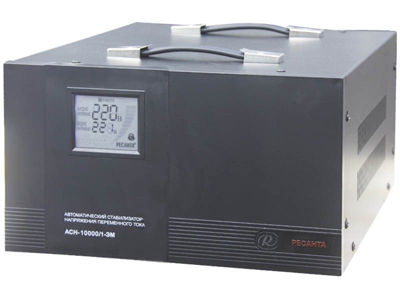 Стабилизатор напряжения РЕСАНТА АСН-10000/1-ЭМ электромеханического типа предназначен для выравнивания входного напряжения и защиты приборов от перепадов напряжения с суммарной мощностью до 10 кВт. Работает с напряжением 220В с точностью до +/-2%. Устройство оснащено фильтрами сетевых помех, предотвращающими искажение частотной синусоиды, микропроцессорным управлением и дисплеем, отображающим параметры напряжения. Превышение пределов поддерживаемого входного напряжения автоматически отключает подачу питания. Прочный корпус защищает внутренние узлы аппарата от повреждений. Прибор может обеспечивать стабильным питанием - телевизор, ресивер, DVD проигрыватель, кассовый аппарат, газовый котел.