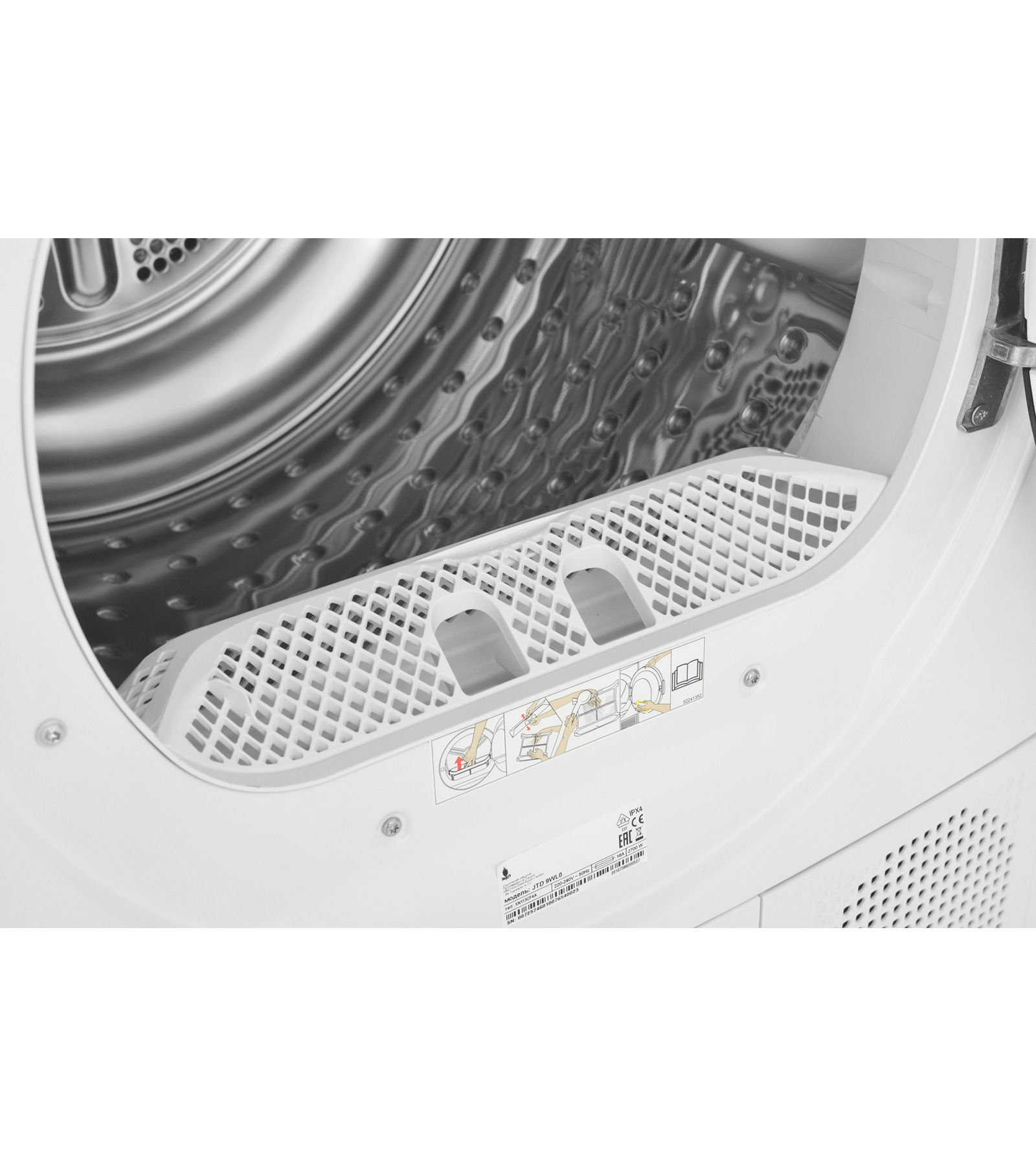 Устройство выполнено в лаконичном дизайне, белый цвет сочетается с темной панелью управления. Представленная модель с фронтальной загрузкой, что несомненно является привычным вариантом. Не ждите больше пока вещи высохнут сами, просто загрузите в сушильную машину 9 килограмм белья, и спустя некоторое время, все будет готово для дальнейшего использования. Модернизированная система подачи воздуха в сушильном барабане Jacky's позволит высушить одежду быстро и эффективно чем обычные приборы с тепловыми насосами. Разработчики Jacky's JTD 9WL0 создали комфортную систему управления, благодаря этому все просто и удобно. На панель управление расположены сенсорные кнопки, которые отличаются высокой чувствительностью при нажатии. Также Вы можете установить переменное вращение барабана для увеличения эффективности.