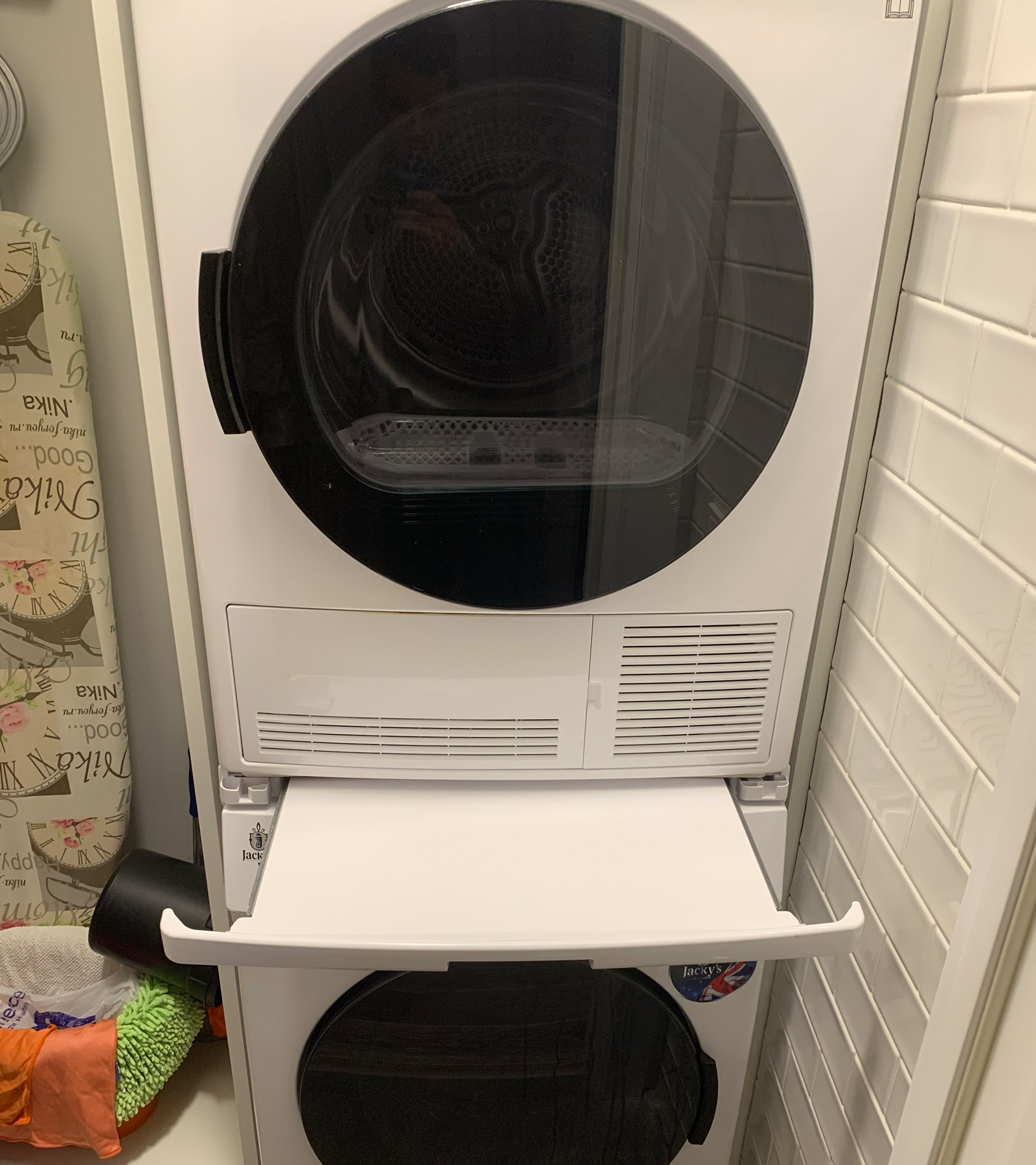 Сушильную машину Jacky’s можно установить как отдельностоящая или в колонну со стиральной машиной, благодаря соединительному элементу "Кит".