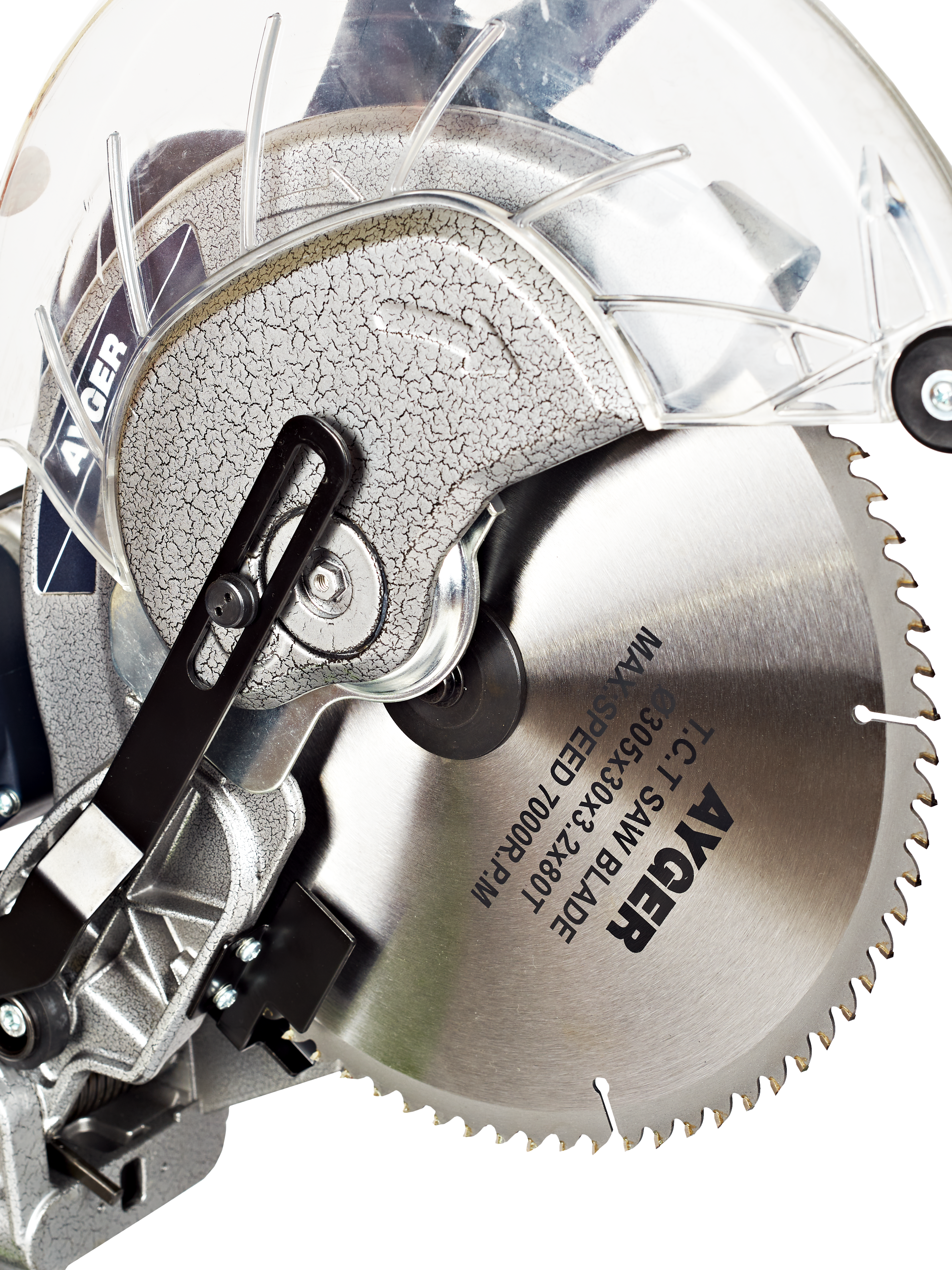 Торцовочная пила AYGER MSH-305/2200 мощная и надежная торцовочная пила высокой точности. Удобна, как при стационарном применении в мастерских, так и на выездных работах. Пила оснащается ременным приводом двигателя, что позволяет снизить шум и вибрацию. Функция протяжки заметно повышает работоспособность инструмента. Поворотный опорный стол – позволяет производить рез под углом до 45 градусов, как влево, так и вправо. Идеально подойдет для высокоточного распила торцов заготовок из древесины и ее производных под прямым или определенным косым углом, реза торцов под углом. Специальный сплав из алюминия обеспечивает легкость и прочность конструкции пилы. Защитный кожух закрывается автоматически, обеспечивая безопасность работы. Для простоты и оперативности замены дисков предусмотрена специальная кнопка, блокирующая шпиндель. Стол поворотный. Замена диска осуществляется после нажатия кнопки блокировки шпинделя. В комплекте имеется струбцина для надежной фиксации заготовки.