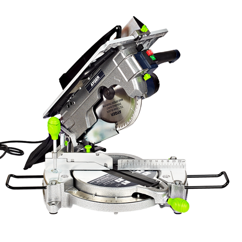 Торцовочная пила AYGER MST-255/2000 - комбинированное устройство, которое можно использовать как настольную или торцовочную пилу, работает на базе электродвигателя с прямым приводом и частотой вращения 4700 об/мин. Естественное охлаждение мотора осуществляется через предусмотренные в корпусе отверстия. Инструмент можно применять для распиливания заготовок из дерева. Для простоты и оперативности замены дисков предусмотрена специальная кнопка, блокирующая шпиндель. Защитный кожух частично прикрывает пильный диск в нерабочих зонах, обеспечивая безопасность оператора. Для поддержания чистоты рекомендуется пользоваться пылесборником, в который будут поступать отходы производства, или подключать устройство к строительному пылесосу.