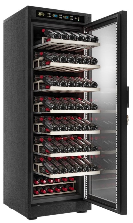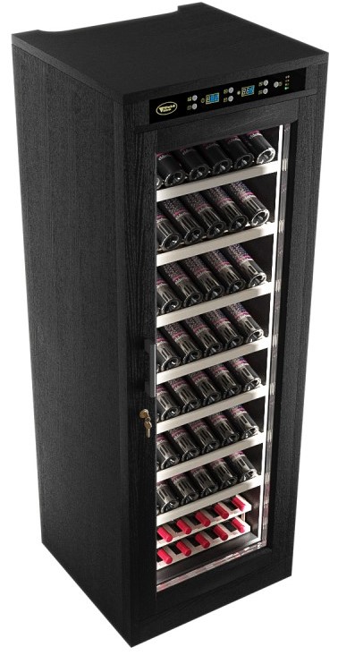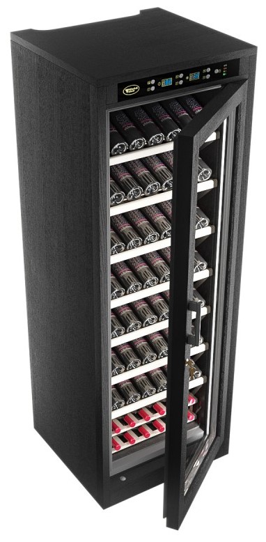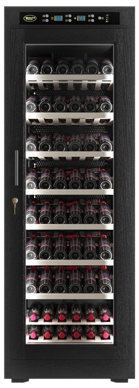 Cold Vine C108-WB1 (Modern) — отдельностоящий винный шкаф в деревянном корпусе черного цвета. Модель рассчитана на одновременное хранение до 108 бутылок типа Бордо. Цифровая индикация температуры и LED-подсветка внутреннего пространства гарантируют комфортную эксплуатацию прибора.