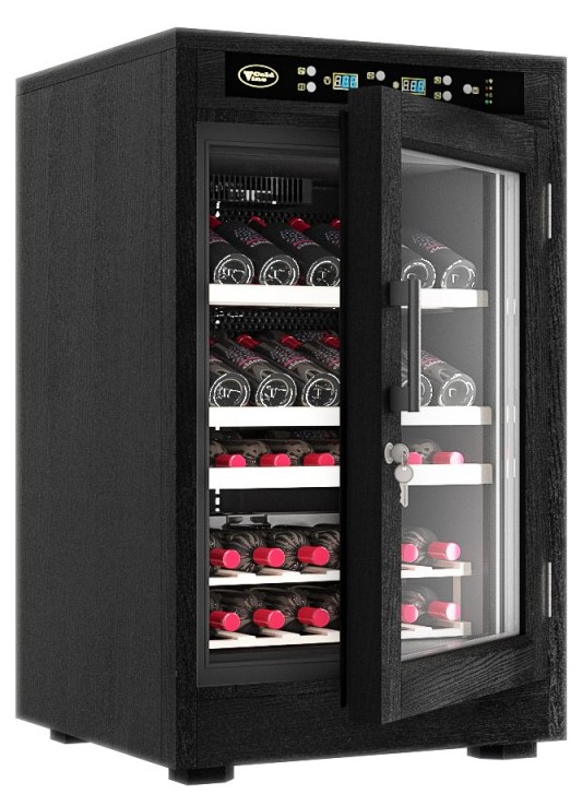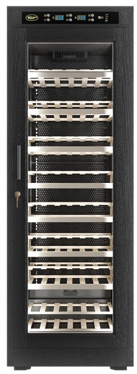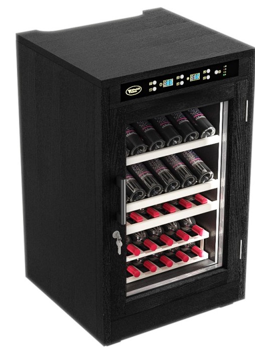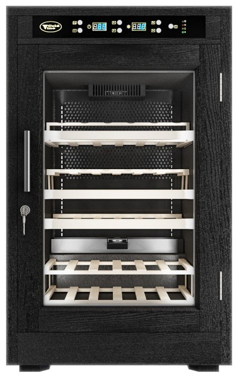 Cold Vine C46-WB1 (Modern) — отдельностоящий винный шкаф в черном деревянном корпусе. Модель укомплектована 1 стационарной и 3 выкатными полками. Для удобства эксплуатации предусмотрена светодиодная подсветка внутреннего пространства.