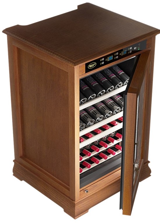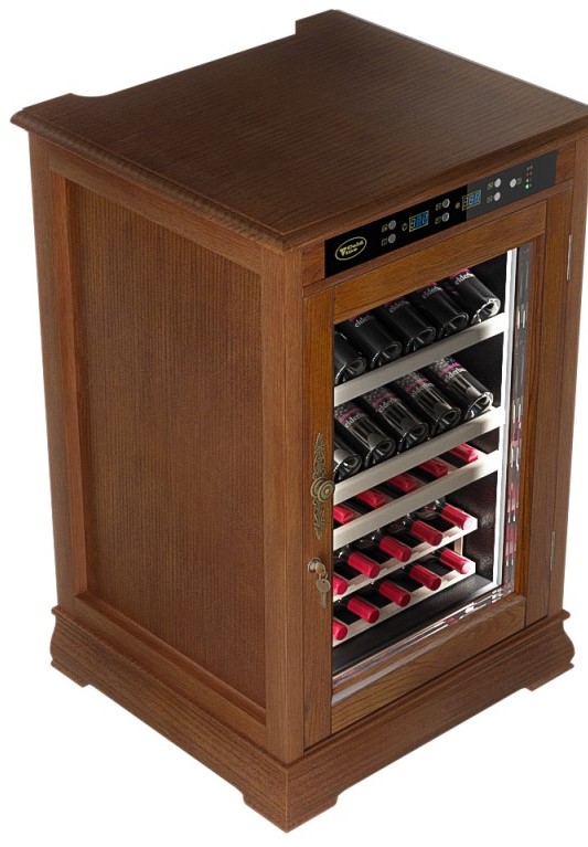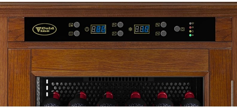 Cold Vine C46-WN1 (Classic) — отдельностоящий винный шкаф в деревянном корпусе орехового цвета. Модель рассчитана на одновременную загрузку до 46 бутылок объемом 0.75 л. Электронная панель управления с цифровым дисплеем позволяет проконтролировать температуру внутри прибора.